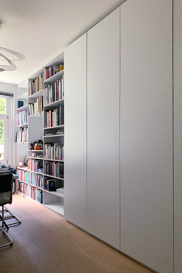 Wandkast uit Berken multiplex bekleed met Hpl.